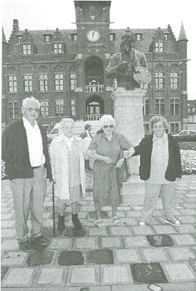 Engelandvaarders Germain Decorte, Yvonne Vantorre en Sheila Glanville en Gilberte Beirens recent ontvangen op het stadhuis