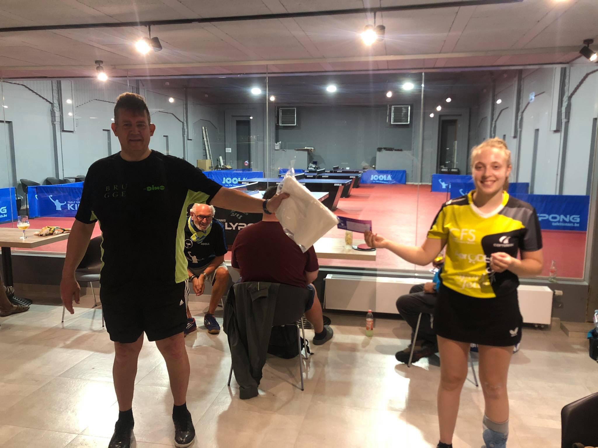 Graag vermelden we ook nog dat Carl, na een schitterend seizoen 2019-2020, alweer gestegen is in klassement en dat in de beide sportverbonden waar hij aangesloten is : bij de VTTL steeg hij naar C2 en bij Sporta steeg hij naar B6; in beide verbonden zijn hoogste klassement ooit.