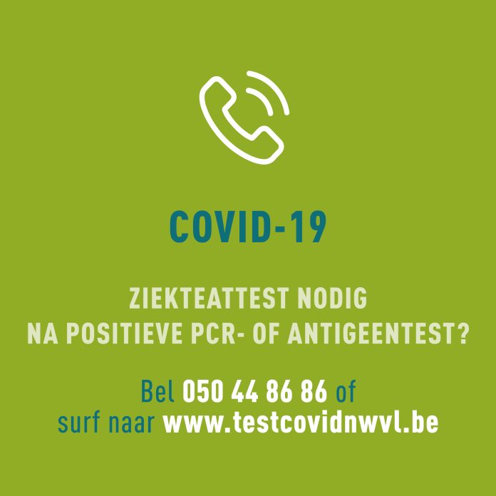 Via het callcenter zullen de inwoners van Blankenberge, Brugge, Damme, De Haan, Jabbeke, Knokke-Heist, Oostkamp, Zedelgem en Zuienkerke bij een covid-besmetting een afwezigheidsattest kunnen verkrijgen voor hun werkgever of school. Je kunt het ziektebriefje ook verkrijgen via het e-loket op www.testcovidnwvl.be.