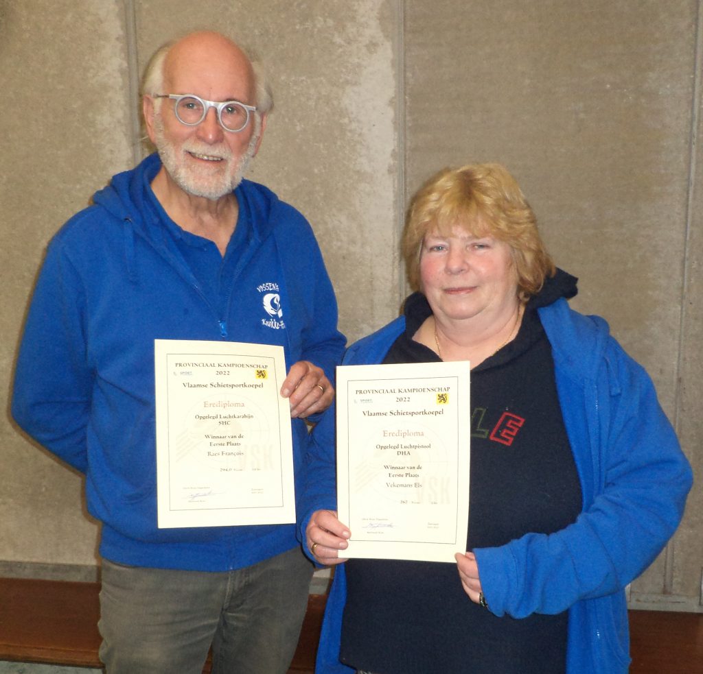 Bij Luchtkarabijn opgelegd werd François Raes, reeds 53 jaar voorzitter van Royal shooting air Vossenhul, provinciaal kampioen te Zwevegem op 8 jan. 2022. Hij behaalde zijn titel dank zij een sterke reeks van 294/300 p. tevens zijn persoonlijk record.