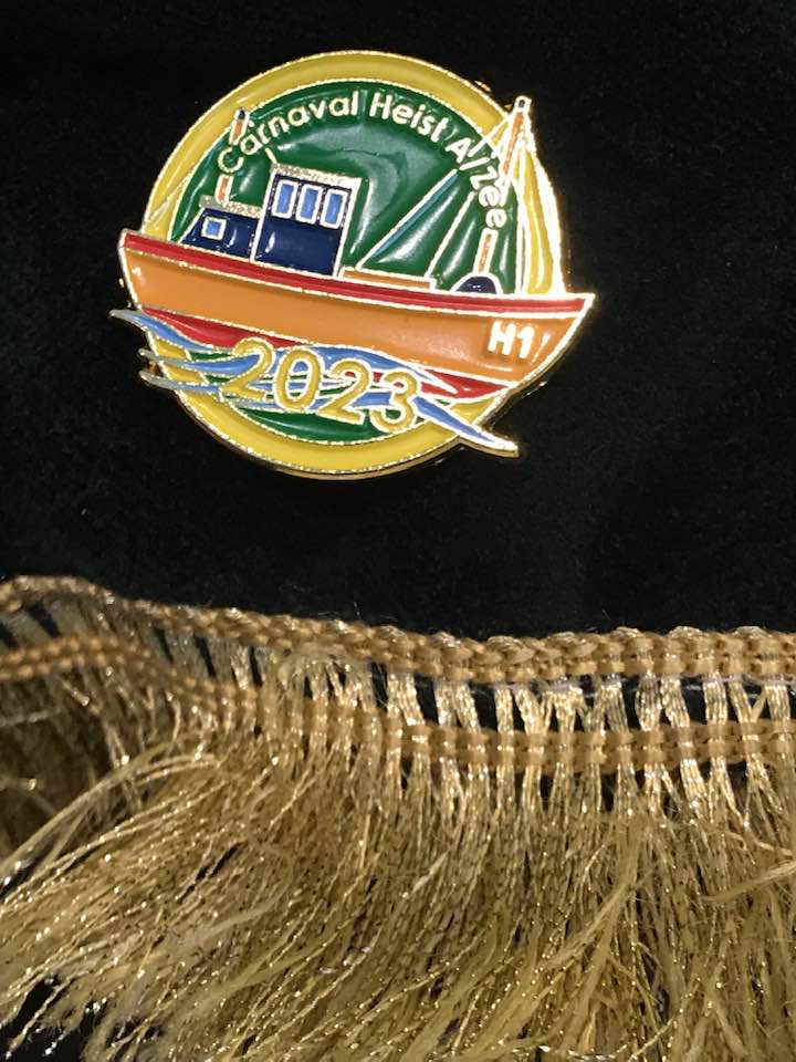 Op de Carnavalpin dit jaar de vissersboot H1, in tijden van Oekraïense vluchtelingen staat de pin dit jaar stil bij het feit dat er heel wat van onze vissers als vluchtelingen naar het Nederlandse Zierikzee (1914-1918) moesten vluchten. Visserij en carnaval gaan in Knokke-Heist hand in hand. Burgemeester Piet De Groote kwam het Hof der Prinsen ook danken voor hun inzet om dat cultureel erfgoed levendig te houden.