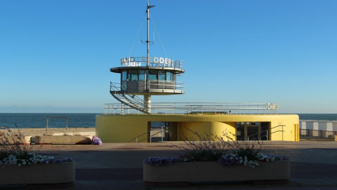 Zaterdag is het zonnig met wat hoge sluierwolken. Maxima rond 28°C. Goed zicht. De wind waait matig (3) uit O, krimpt naar NO en neemt toe tot matig (3 à 4).