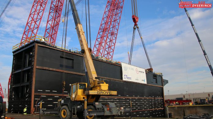 Gisteren werd in de haven van Zeebrugge een sluisdeur van de Pierre Vandammesluis op indrukwekkende manier vanuit de achterhaven terug naar de sluis gebracht. De deur (ruim 2000 ton, 60 m lang, 24 m hoog en 11 m breed) werd na een renovatie van anderhalf jaar via een hijsbok richting het sluiscomplex getransporteerd en vervolgens in de deurkamer geplaatst. De operatie maakt deel uit van de belangrijke renovatiewerken aan de Pierre Vandammesluis, de cruciale toegang tot de achterhaven van Zeebrugge.