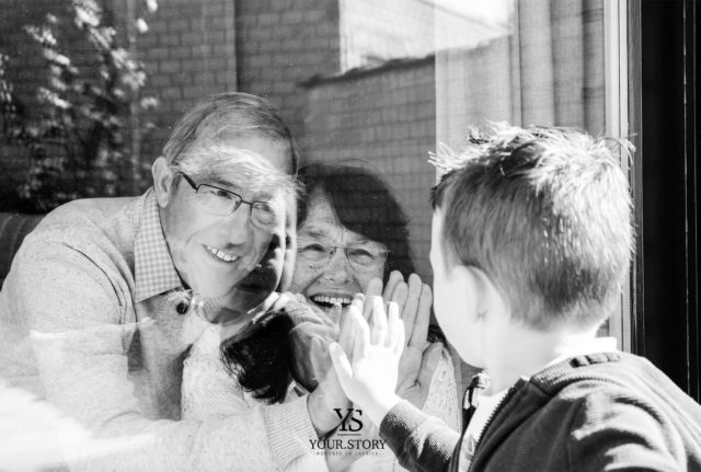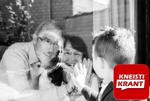 “Dit is allemaal gestart met mijn schoonouders even te willen verrassen met een foto van ons kindje Toine en hen van achter het raam” legt Kim uit. “Zij zorgen normaal elke dag voor hem (voor en na school) en missen hem nu heel hard. Zo hebben we toch een mooie herinnering aan deze bizarre tijden. Ze waren zo blij met de foto en ik kreeg zoveel reactie op Facebook dat ik gestart ben met het projectje #knokkeheisttegencorona. Mensen kunnen gratis een afspraak maken en ik kom met de fiets tot bij hen om raamfoto’s te maken van hun gezin” gaat Kim verder.
