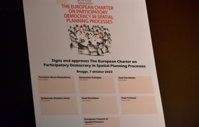 Net voor het weekend ondertekende schepen Kris Demeyere in Owla, de voormalige Heilige Familiekerk in Brugge, samen met de dienst Ruimtelijke Planning van de provincie West-Vlaanderen en een aantal andere mandatarissen van West-Vlaamse gemeenten, het Europees charter voor participatieve democratie. Het Knokke-Heistse ensemble King Jazz onder leiding van Frederik Torresan, zorgde tijdens de viering van 25 jaar dienst Ruimtelijke Planning West-Vlaanderen voor de muzikale omlijsting.