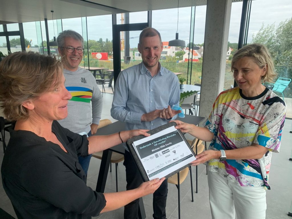 Als kers op de taart bracht Hilde Crevits, als minister van innovatie, ook nog een verrassend bezoekje aan Allwaves, waar de werken aan de wavepool ter hoogte van de Natienlaan te Knokke-Heist ondertussen hun beloop vinden.