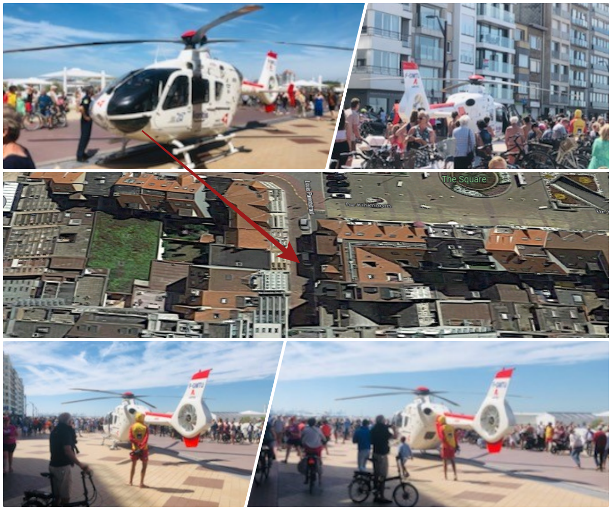 De opstarttijd van de MUG-Heli is 5 minuten en de gemiddelde snelheid via de lucht bedraagt 3 km/min en er wordt 1 minuut gerekend om te landen. De starttijd van de MUG-auto bedraagt ongeveer 2 minuten, de gemiddelde snelheid van een MUG-voertuig wordt geschat op 1 km/min. Een kleine berekening leert ons dat een afstand van tien kilometer vogelvlucht sneller via de lucht wordt overbrugd. De MUG-helikopter die identiek dezelfde medische uitrusting heeft als een MUG-voertuig, kan één patiënt vervoeren zowel in liggende als in halfzittende houding. In dit geval kon de heli perfect landen op de Zeedijk die door de Lokale Politie vrij was gemaakt.