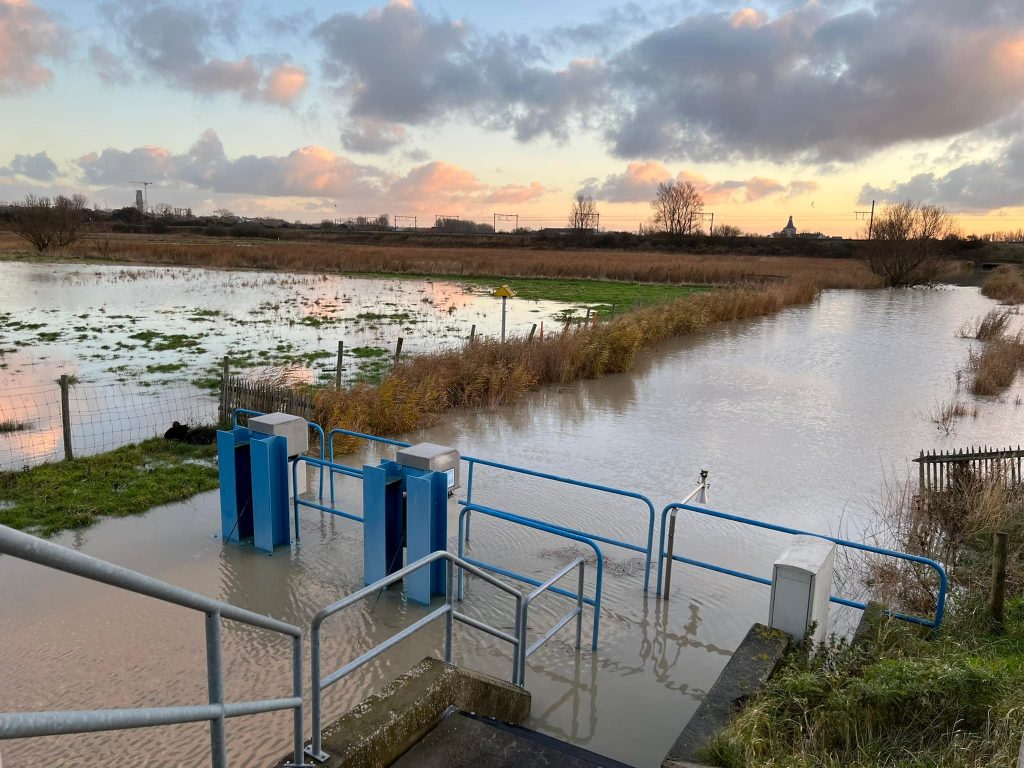 Ook in onze streek heeft de regen van vrijdag en zaterdag voor heel wat hoge waterstanden gezorgd. Velden en weiden stonden blank. Gelukkig kan heel wat erger worden voorkomen. “We hebben alle middelen ingezet om de voeten droog te houden, zegt Schepen Kris Demeyere. Knokke-Heist was weer uniek in Vlaanderen met 50mm neerslag. Hier een daar kon een gracht buiten zijn oevers treden en overvloeien in een weide. Alles is onder controle dankzij het inzetten van de pompgemalen en aanvullende mobiele pompen afgelopen nacht. Er kon intussen al heel wat water worden geloosd in zee”.