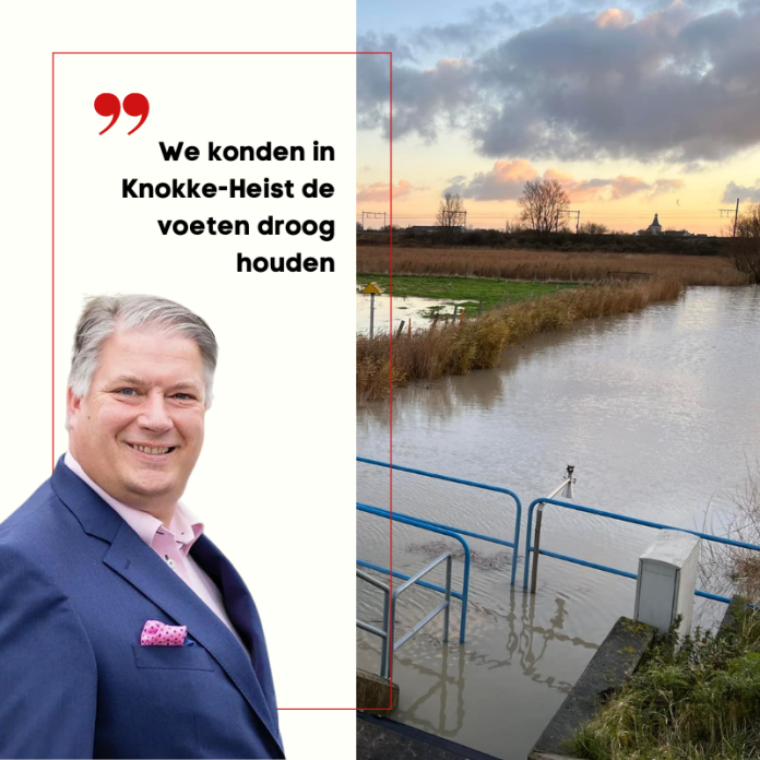 Ook in onze streek heeft de regen van vrijdag en zaterdag voor heel wat hoge waterstanden gezorgd. Velden en weiden stonden blank. Gelukkig kan heel wat erger worden voorkomen. “We hebben alle middelen ingezet om de voeten droog te houden, zegt Schepen Kris Demeyere. Knokke-Heist was weer uniek in Vlaanderen met 50mm neerslag. Hier een daar kon een gracht buiten zijn oevers treden en overvloeien in een weide. Alles is onder controle dankzij het inzetten van de pompgemalen en aanvullende mobiele pompen afgelopen nacht. Er kon intussen al heel wat water worden geloosd in zee”.