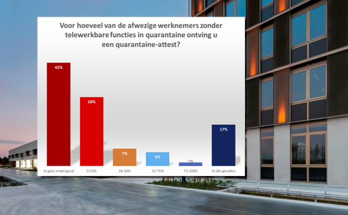 - Van deze bedrijven geeft 4 op 10 (42%) aan dat ze in geen enkel quarantainegeval een quarantaine-attest ontvingen van hun werknemer (maar dus wel een doktersbriefje).