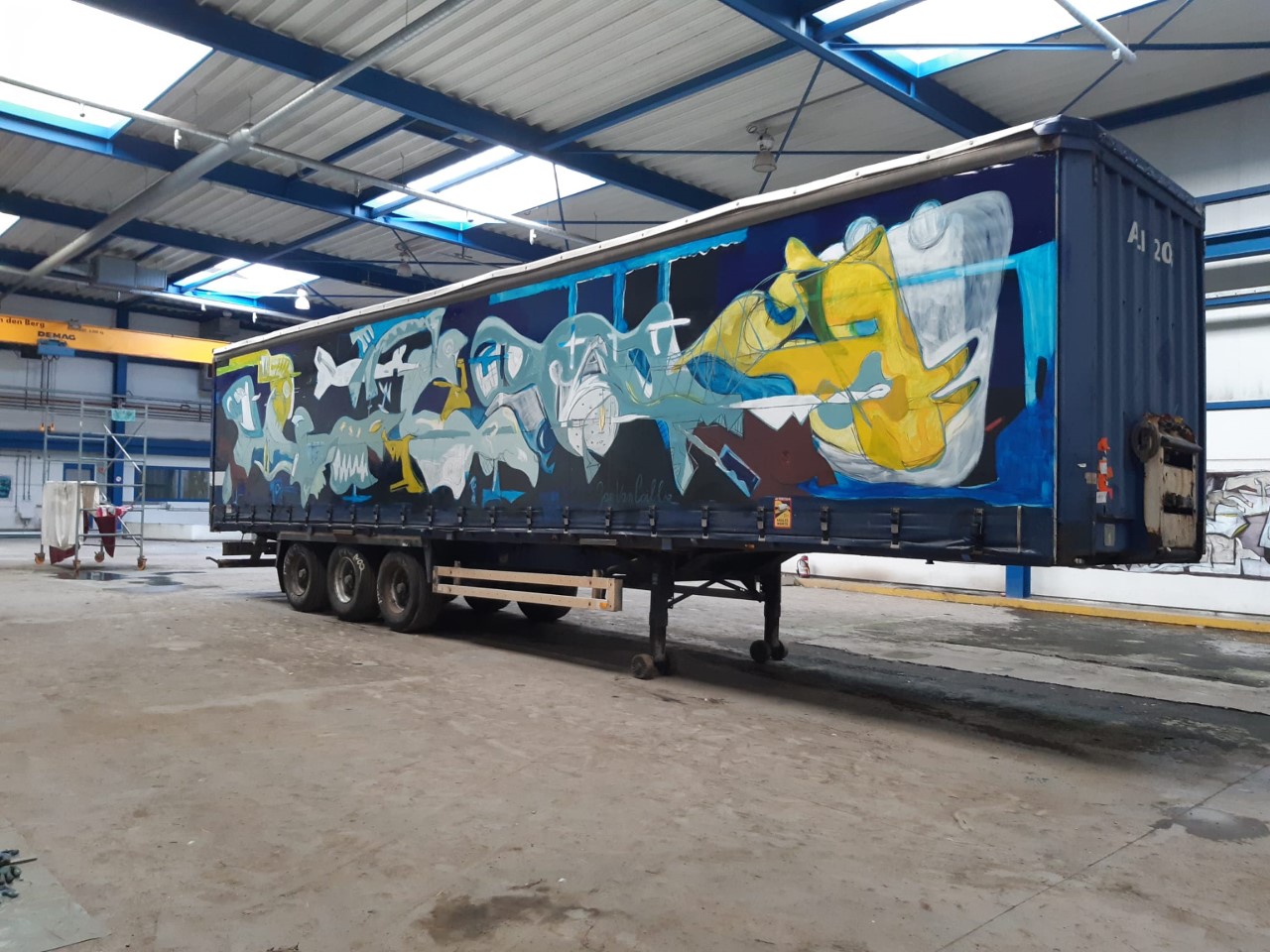 Daarnaast bestond een andere uitdaging in het vinden van de juiste verf die aangebracht wordt op de bache van de trailer. “Deze canvas is flexibel en beweegt dus mee met de wind en de regen. De verf moet bijgevolg voldoende plastische en weersbestendige eigenschappen hebben” aldus Jan Van Coillie.
