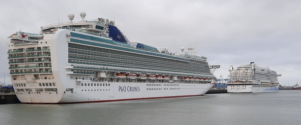 Door de coronapandemie was het meer dan twee jaar geleden dat er nog eens twee cruiseschepen samen afmeerden: dat was het geval met de ‘Ventura’ (116.017 GT, 288,61 m LOA, 36,05 m breed, Britse vlag) van P&O Cruises en de ‘AIDAPrima’ (125.572 GT, 299,95 m LOA, 37,65 m breed, Italiaanse vlag) van Aida Cruises die op 2 januari 2022 samen aan de Zweedse Kaai in Zeebrugge afmeerden.