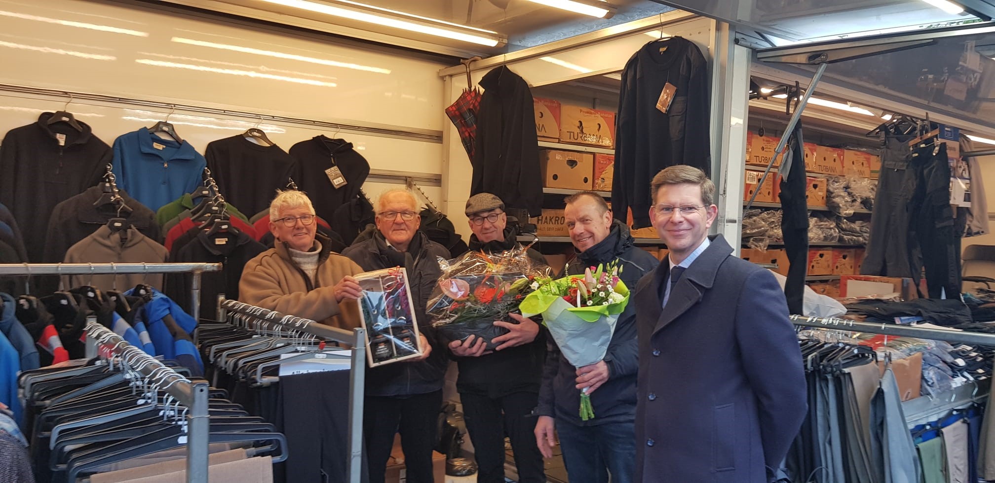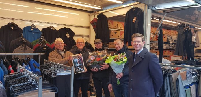 Tientallen jaren was Van de Vreede bedrijfskleding te vinden op de weekmarkt in de gemeente Sluis (Oostburg). Onlangs was dit voor de laatste keer. De firma zet een punt achter het marktondernemerschap, ze gaan nog wel online en in de winkel door met de handel. Wethouder Werkman ging langs om de firma namens de gemeente Sluis te bedanken.