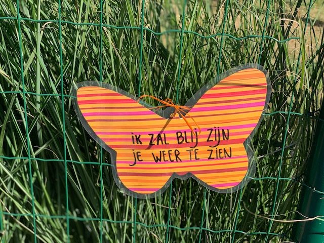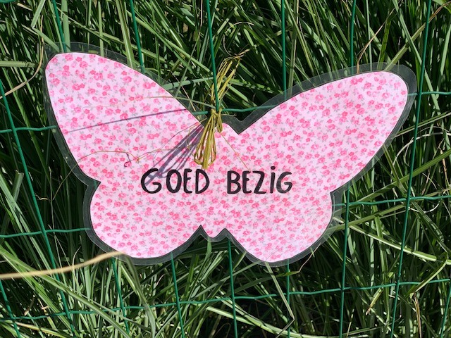 De cliënten maken vlindertjes met een leuke boodschap: warme knuffel, samen sterk, goed bezig, zie je graag…