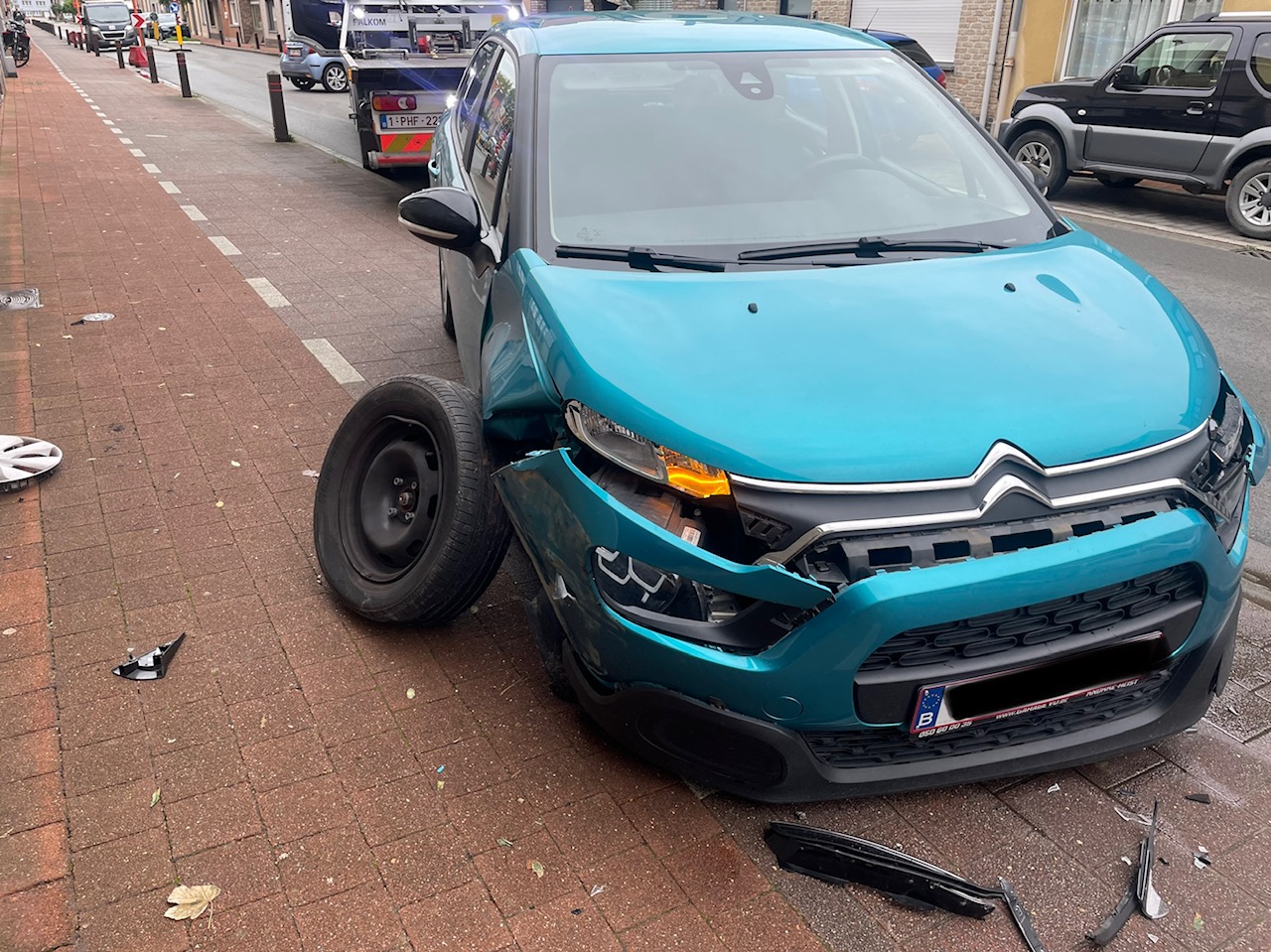 Een bestuurder van een kleine gezinswagen die maandagnamiddag richting Westkapelle reed in de Westkapellestraat te Heist, verloor de controle van z’n stuur en raakte na de boordsteen ook drie paaltjes. De wagen kwam over het fietspad tot stilstand tegen de gevel. Gelukkig waren er op dat moment geen fietsers of voetgangers in de buurt. De wagen zelf liep hierbij wel heel wat blikschade op en reed vermoedelijk ook te snel. Maar dit zal verder onderzoek moeten aantonen. De bestuurder kwam er met de schrik vanaf.